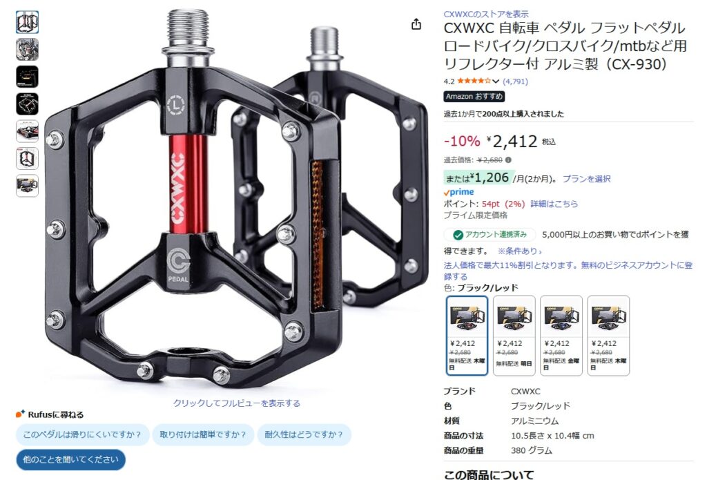 あ、急ぎなのを忘れていました。アリエクで買って2週間もペダル待ちなんかしたくないですよ。と言うわけで購買対象をamazonに絞ることに。