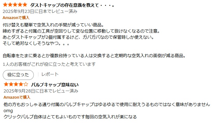 通常のバルブキャップは回して閉じます。このクリックバルブのキャップは押し込んで閉じます。そうです、押し込んで閉じるのを知らずにレビューで非難している可能性が高いんですね。回してダメなら押し込んでみるという簡単な発想の切り替えさえできない。