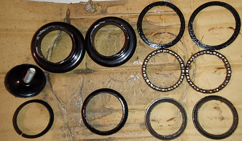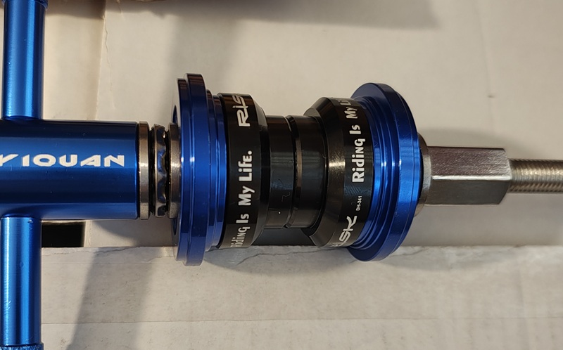 圧入工具すごいですね。以前は自作工具を使いましたが、今回は思い切って買ってみました。¥2,000くらいの高級品ですよ。両端ベアリング仕様が素敵。上下ヘッドパーツがあっさり取付完了しました。