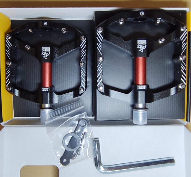 注文翌日に届きました。第一印象はかなり品質高くね?です。手で回した感触は申し分なし。ペダル取付用の工具と予備のスパイクピン+工具、クランク接続部の極薄ワッシャ4枚付属と至れり尽くせりのパッケージでした。