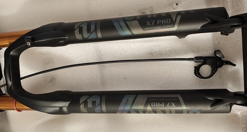 そして、フォークを取り付けました。コラムは切らずにスペーサーをやりくりして仮固定です。ノーマルサス時に80mmトラベル仕様だったので120mm化したことにより少し前上がりになりました。ブレーキ取り付けはインターナショナルからポストマウントに変更となりますが、使っているブレーキがAvid BB7なのでアダプター無しでそのまま付けられるようになるはずです。