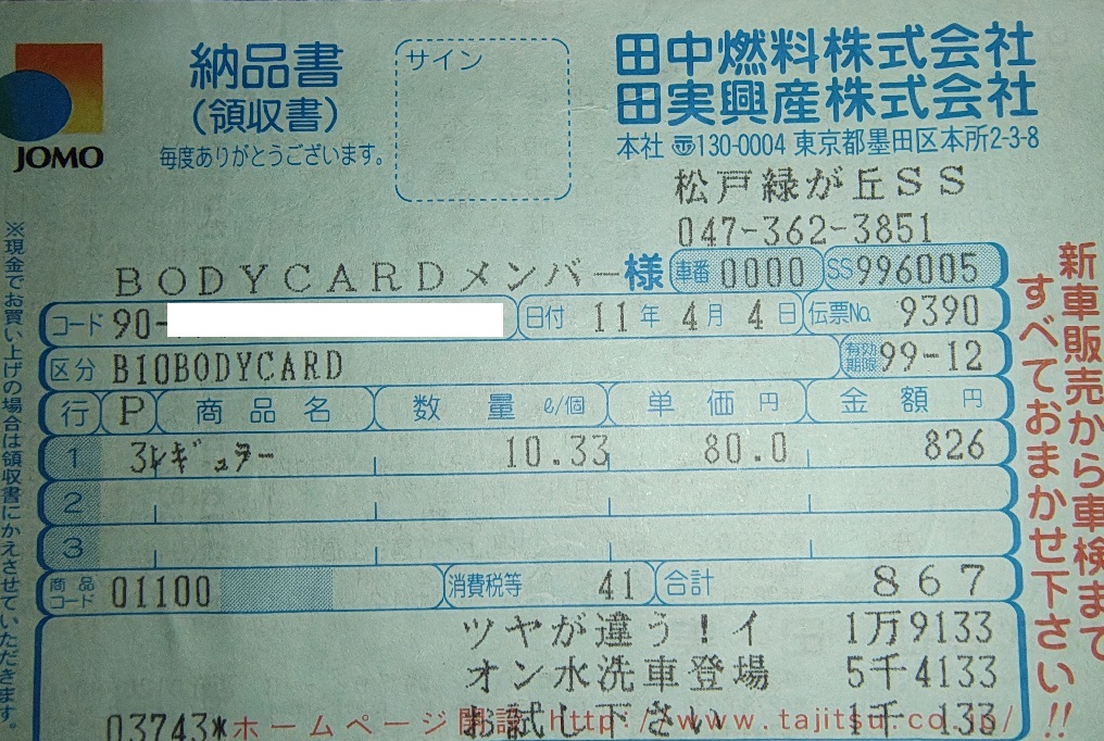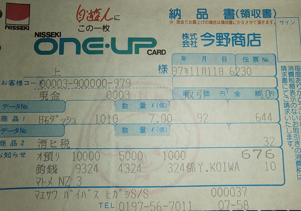 今じゃ考えられない価格ですよ。JOMOも既に消えていますし、昔の伝票を見るだけでも感慨深いですね。
