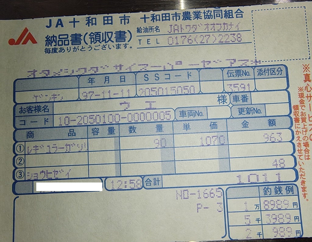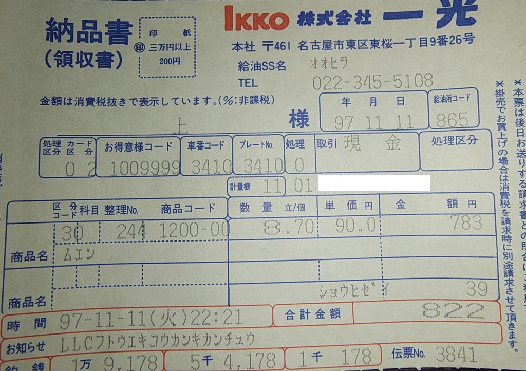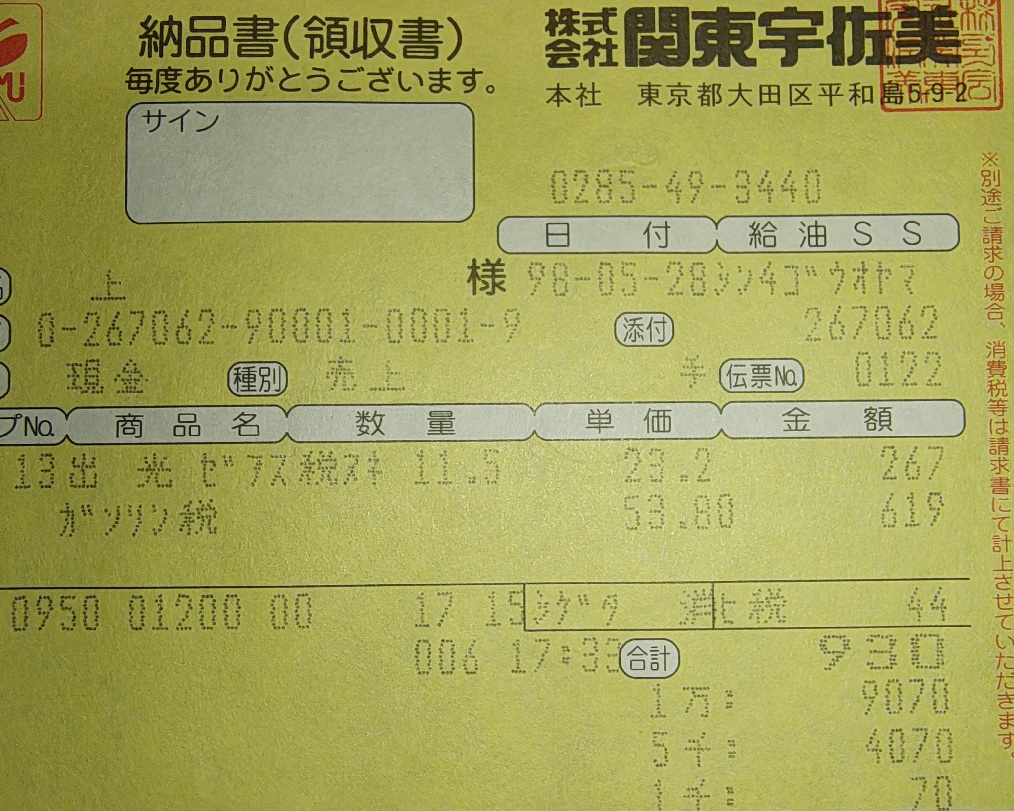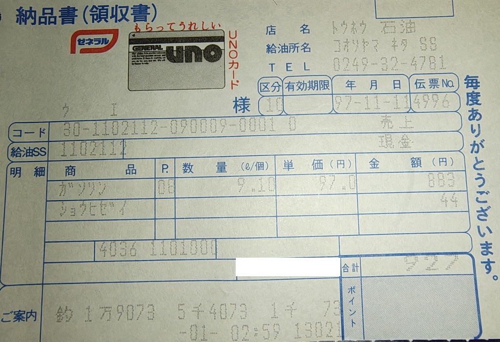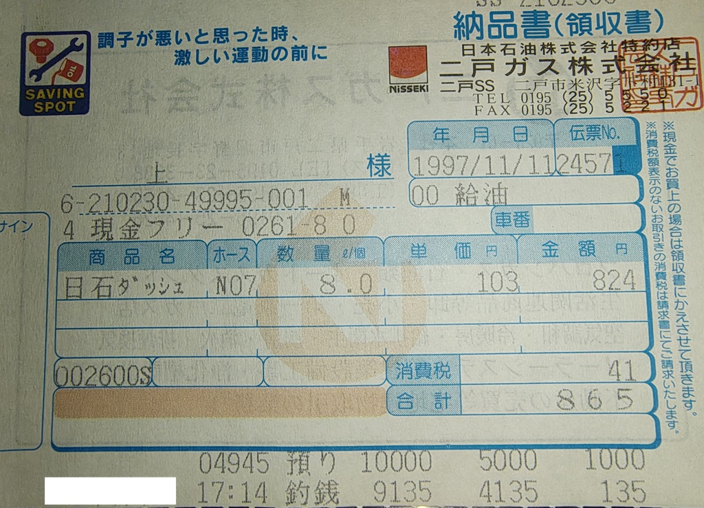 さらにさらにさかのぼると、ガソリンスタンドの領収書伝票がざっくりとした軌跡の把握に使えるので保管していました。感熱のレシートはすぐに文字が消えるので使えないです。横長の伝票であれば今でもかろうじて文字が判別できたりします。