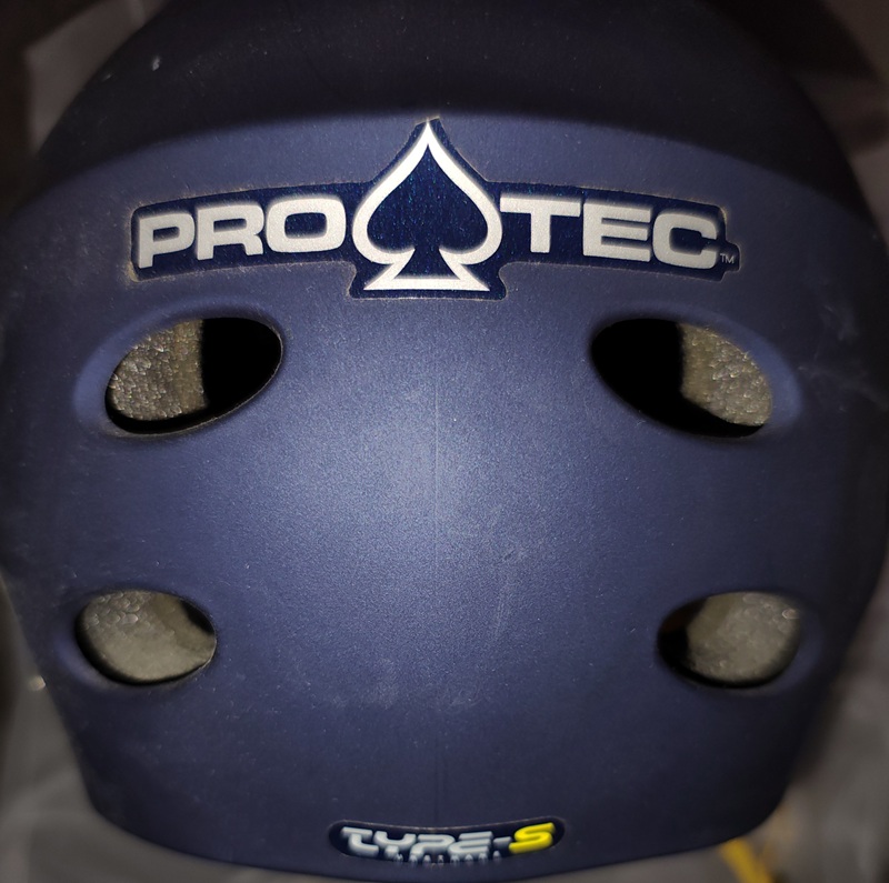 PROTECのBMX寄りのヘルメットです。サイズはぴったりなれど、衝撃吸収性能は古いということもあって、おそらくうんこレベルです。