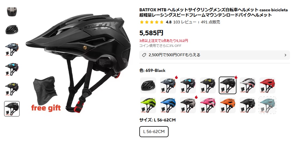 BATFOXのMTB用ヘルメットです。アリエクで¥3,738でした。もう急ぎでなければほとんどアリエクで調達することにしています。a〇znはトラブル多いのでね…
