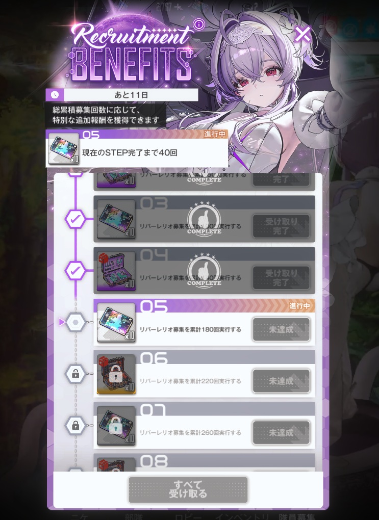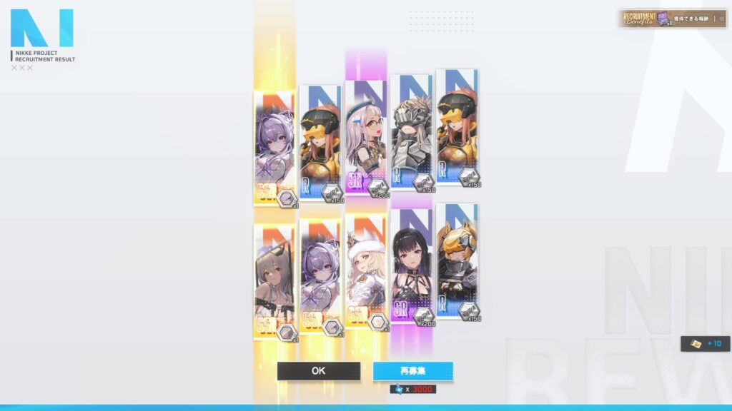 皆さんこんにちは。本日は今一番熱いゲームと言っても過言ではないメガニケの記事になります。さて、リバーレリオ全力ガチャ結果発表の時が来ました。直前のナユタでかなり放出させられたのでリバーレリオは70連ほど回せる感触でしたが、ロストセクターやらキャンペーンハード進行でジュエルを集め、最終的には140連回すことができました。