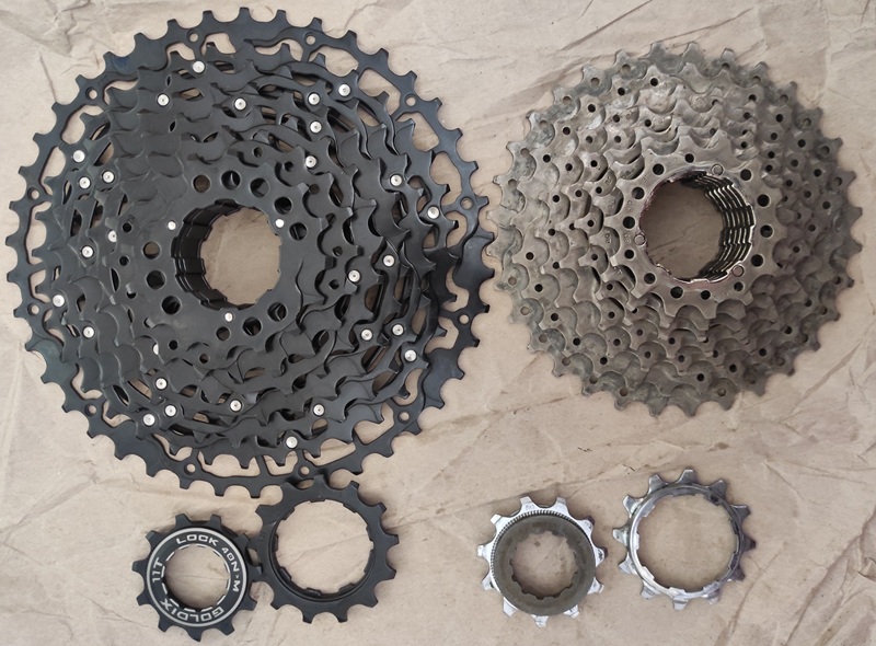 後付けパーツ?そうだった、アダプターやらスペーサーで何とかなるのが自転車だったのを忘れていた。そもそも9速巨大スプロケなのに9速用ディレイラーが使えないというのもおかしな話なわけで。