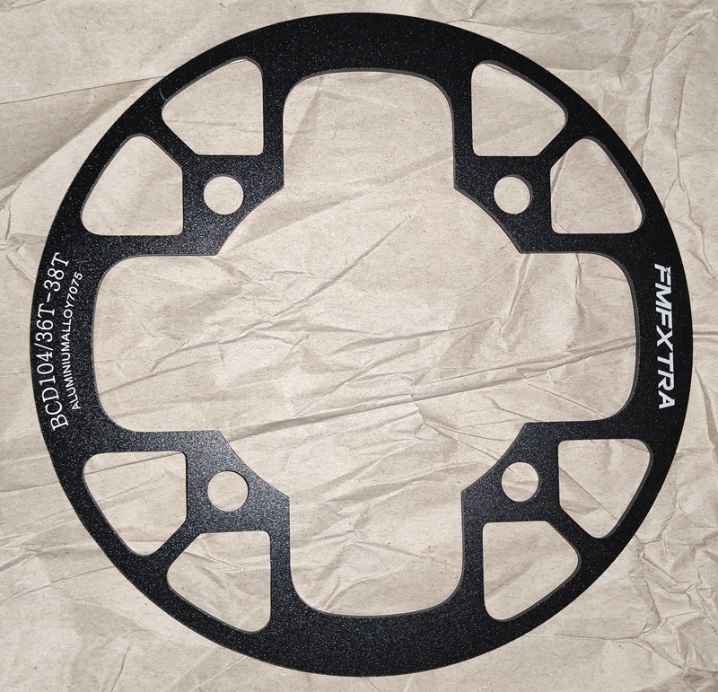 バッシュガードだと思って買いましたがかなり薄いです。¥861で購入。クランクは変更しないのでアウター位置に取り付けます。