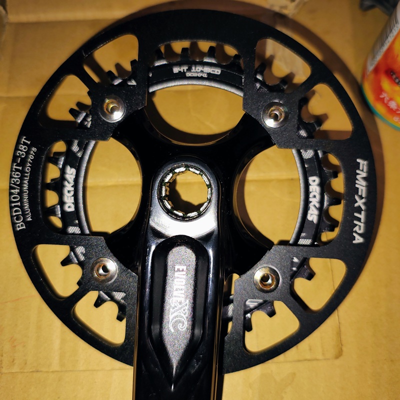 これでいったん落ち着いていたのですが、前述のアリエク便にてチェーンガードが届いたので取り付けしたところ、ロー寄せのチェーンリングと非常に相性が悪く、スペーサー8mm→2mmとし、チェーンリング取り付け位置を変更。さらにチェーンリングそのものをDecaks34Tゴールドに変更し、取付ボルトもRaceface純正に戻しました。チェーンガードと言っても、別にチェーン落ちするわけではないので不要なのですが、一応予防アクセサリーとして取り付けました。画像は自転車完成時に出す予定。
