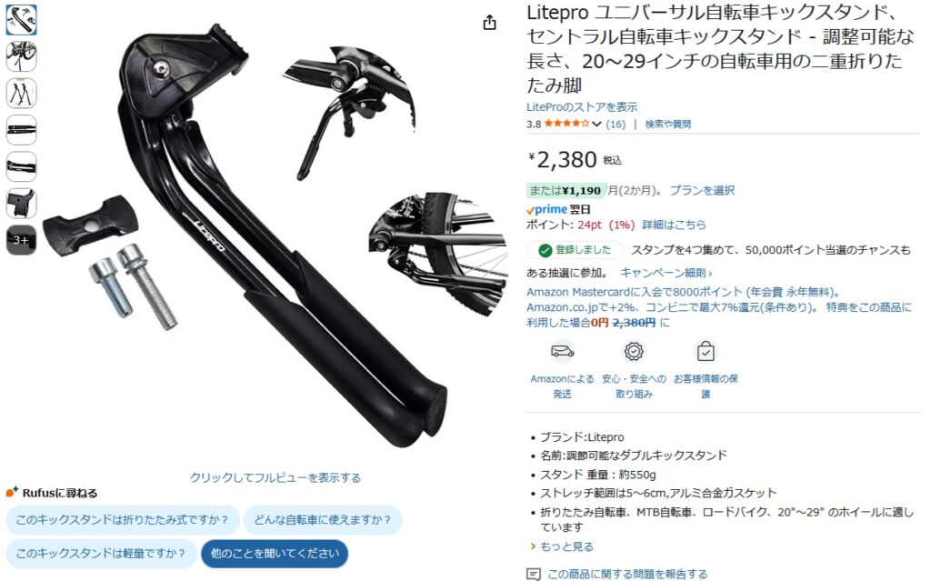 まず、スタンドは下記の物を購入しました。liteproのセンタースタンドです。