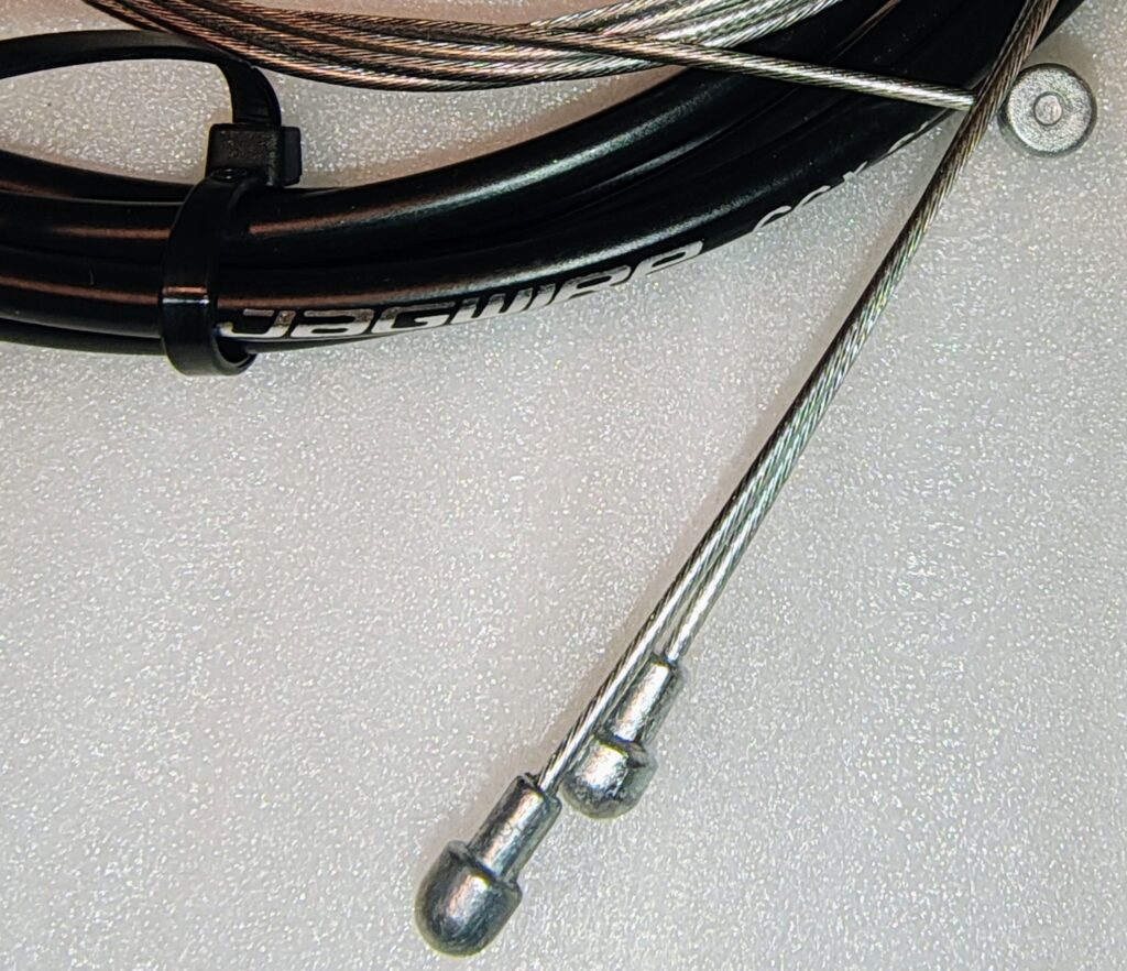 さて、これで残るはワイヤー類の張り替えです。シフターとフロントブレーキは終わっているのでリヤブレーキだけになります。ノーマルですとトップチューブ上にインナーワイヤーが露出するタイプなのですが、今回はフルアウター化します。使ったのはJagwireのCGX-SLです。ブレーキとシフト用のフルセットで¥1,252でした。