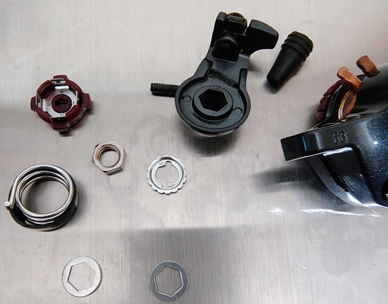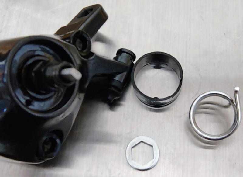 仕組みは意外とシンプルでスプリングの力でアームが戻るようです。今までの症状としては引きしろ目いっぱいまで引くと全く戻らなくなる状態。シリコンスプレー後に放置浸透で改善。