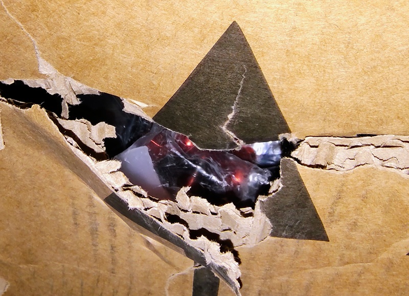 この段ボールに空いた穴で、人生初めての宅配受け取り拒否提案を受けました。しかし、MTBホイールがこの程度の衝撃で壊れていたら話にならねーよ!と言うか面倒なのでそのまま受領。開封した結果は破損していました。輸送用のハブ固定用プラパーツが。製品そのものに異常は見受けられず。