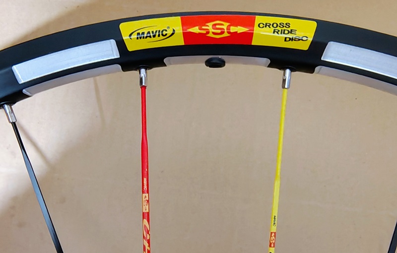 何か見た目は高級ホイールなんですが、名前は今使っているものと同じCROSS RIDE DISCとなっていました。調べた感じ、リムの切削加工なんかが2011 CROSSMAX SLRのように見えます。実際にリムが切削加工されており、パっと見は本家に似ているのですが汎用ニップルだったりして意外に整備性は良さそうです。