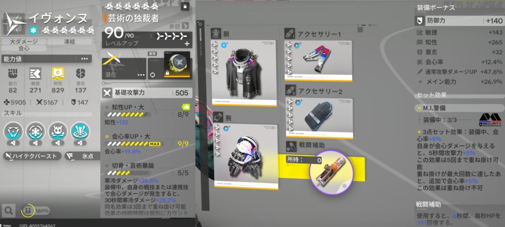 表に出して使うと銃乱射しながら敵に突っ込んで行くスタイルが使いにくく、あくまでイヴォンヌの補助としての採用なので、高凸は不要。